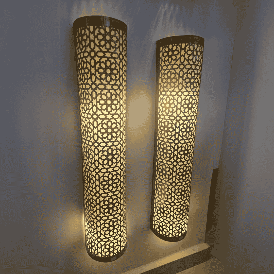El diseño de la lampara marroquí es de origen islámico, basada en la simetría la repetición de los patrones geométricos son comunes en marruecos estos dan origen a la luz suave y fragmentada creando un ambiente cálido y acogedor.