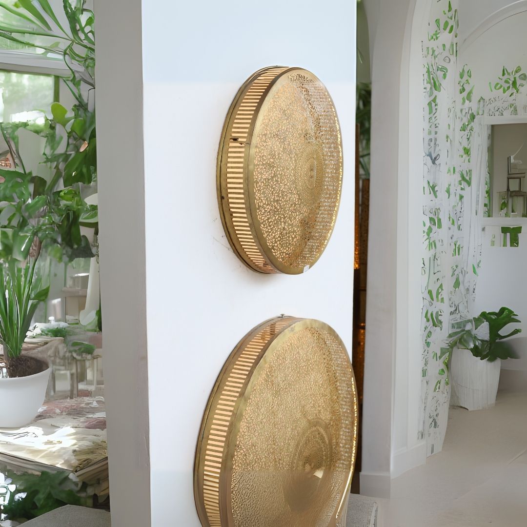 Lámpara marroquí circular de metal calado en dorado, 3 tamaños. Arte y luz en tu espacio. se vende por pieza